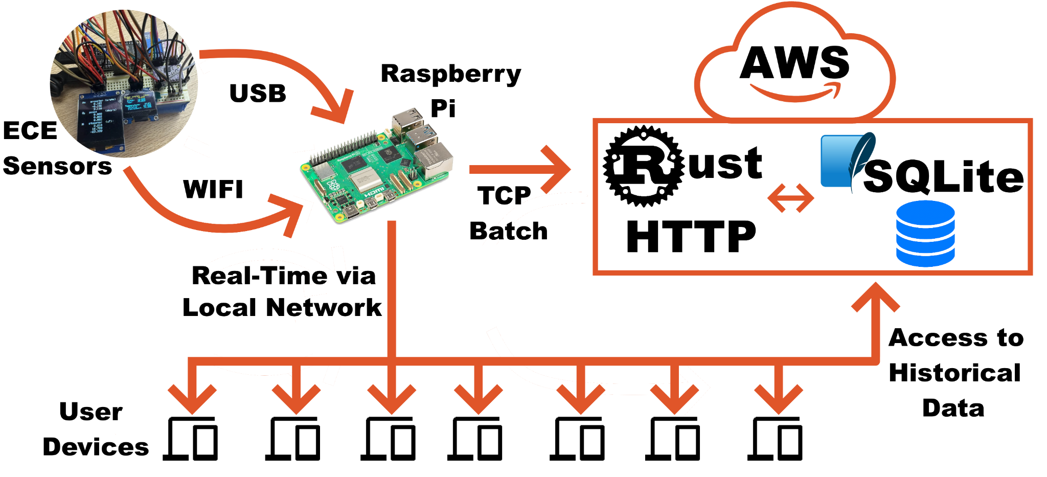 Our CompSci Capstone team is partnering with an ECE team to develop a complete sensor data acquisition device. With the ECE team's hardware sensors providing us data, we're sending data with an LTE-capable platform to an online backend. This is all accessible from our online, web-based client.
